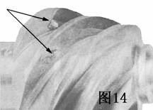 圖13麻點(diǎn)毀壞齒輪的齒面。