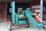 ■牽引拖車(chē)式帶輔助喂料、二次獨(dú)立清選和裝卡車(chē)的免剝皮玉米脫粒機(jī)